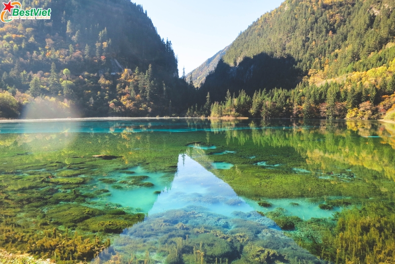 Cửu Trại Câu - được mệnh danh là “Thiên đường nơi hạ giới” nằm trong khu vực Châu tự trị dân tộc Tạng A Bá và dân tộc Khương với núi non hùng vĩ ở độ cao 4.000m so với mặt nước biển, được UNESCO công nhận là di sản văn hóa thế giới. Nơi đây cũng chính là bối cảnh được chọn để quay một số cảnh trong phim Tây Du Ký. Quý khách tham quan các hồ nước được hình thà nh từ núi đá vôi trầm tích, mỗi hồ là một vẻ đẹp riêng, được tự nhiên sắp đặt thành những khung cảnh đẹp như tranh vẽ.